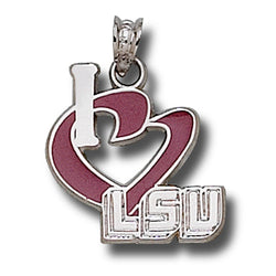 - LSU I Heart LSU With Enamel Small Silver Pendant