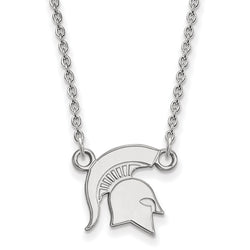 - 10k White Gold Michigan State Spartan Small Pendant 18 inch Necklace