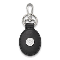 - Sterling Silver w/GP West Virginia U Black Leather Oval Key Chain