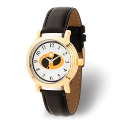 - Disney Adults Incredibles 2 Logo IPG-plated Black Leather Watch